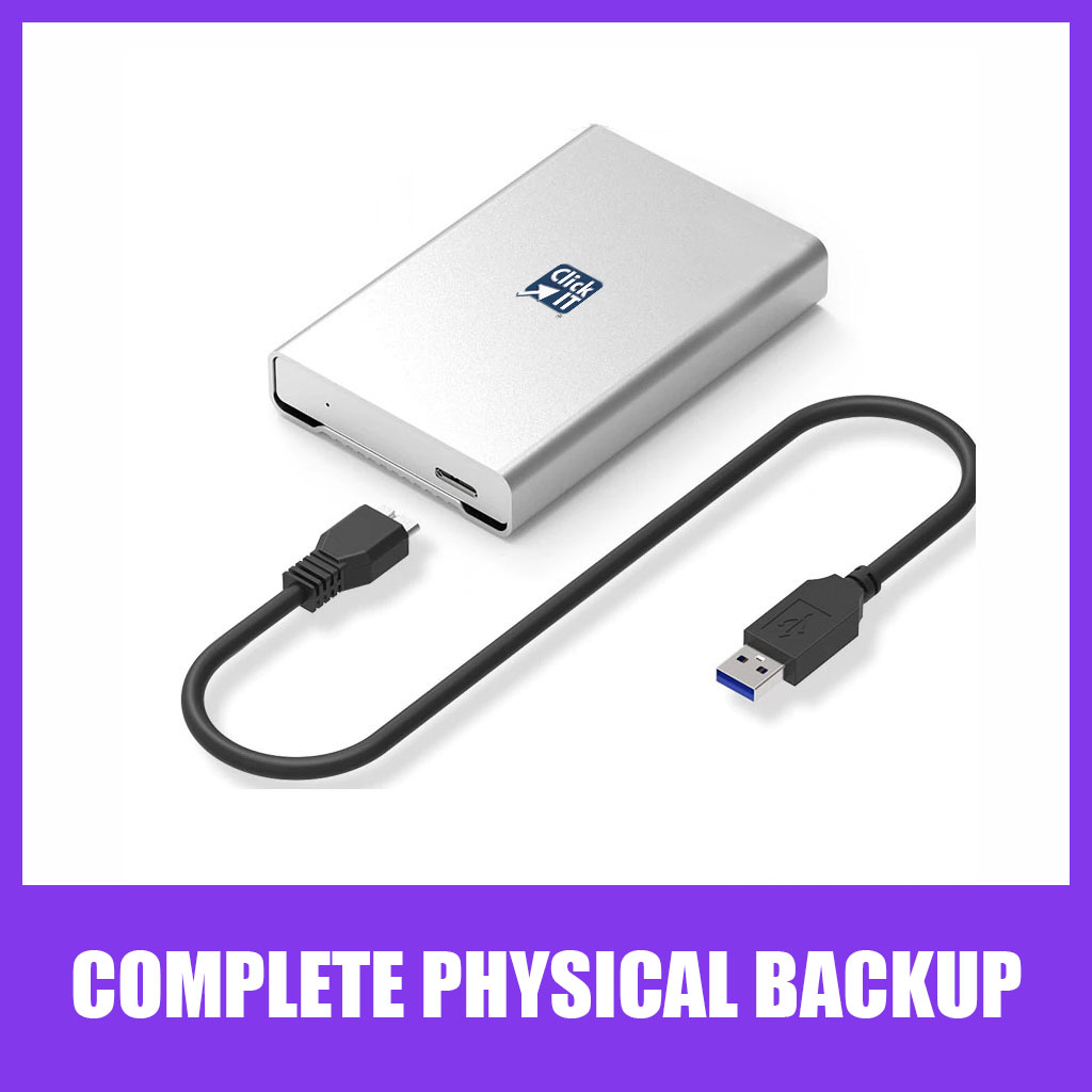 We backup your entire system to a high-speed USB hard drive. Includes installation and configuration of backup software. Price includes a hard drive.